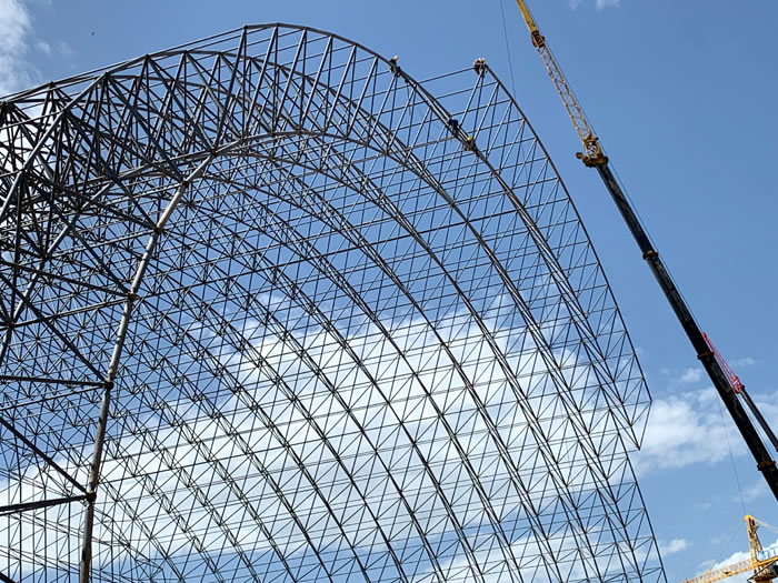 (2)网架加工前应对现场尺寸进行复测,确认无误后方可进行加工、安装;网架制作、运输、安装应遵守《空间网格结构技术规程》JGJ7-2010、《钢网架新乡螺栓球节点》JG/T 10-2009、《钢网架新乡螺栓球节点用高强度螺栓》 GB/T 16939-2016、《新乡钢结构新乡工程新乡施工规范》 GB50755-2012、《新乡钢结构新乡工程新乡施工质量验收标准》 GB50205-2020。